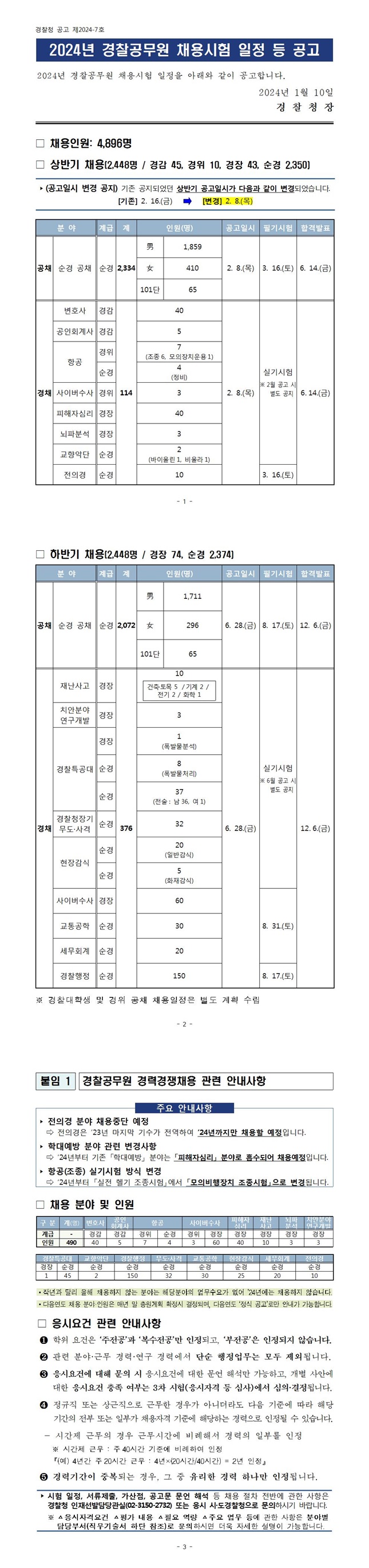 2024년 경찰공무원 채용시험 일정 등 공고.hwp