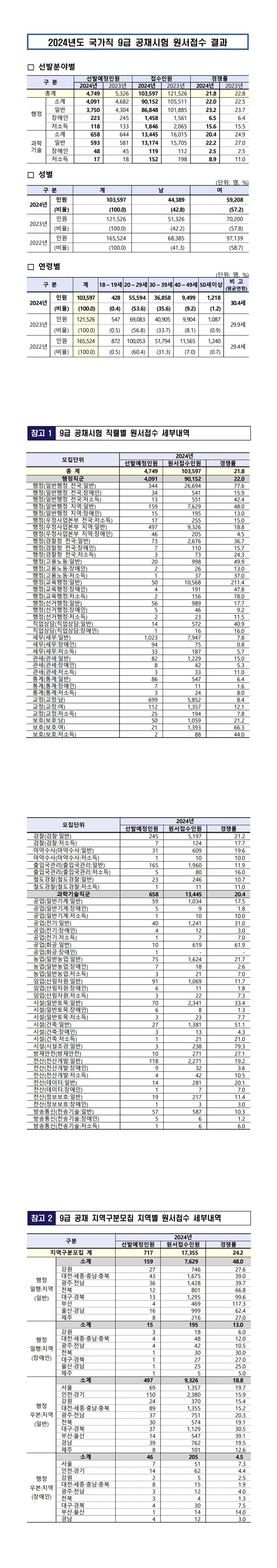 ▶ 2024 인사혁신처 국가공무원 9급 공개경쟁채용시험 경쟁률