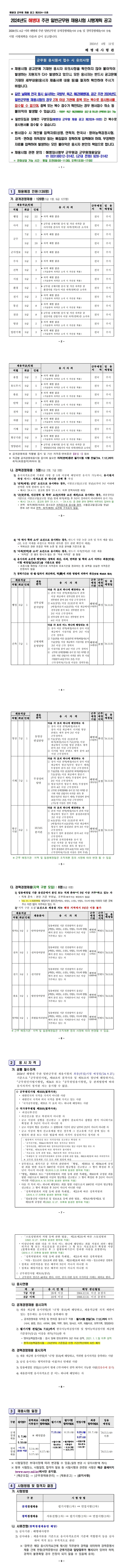▶ 2024년도 해병대 일반군무원 채용시험 계획 공고