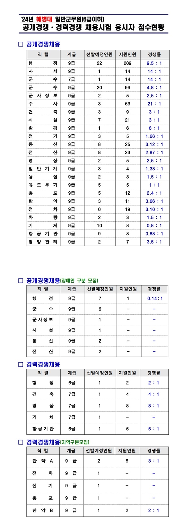 ▶ 2024년 해병대 일반군무원 (공채, 경채) 경쟁률