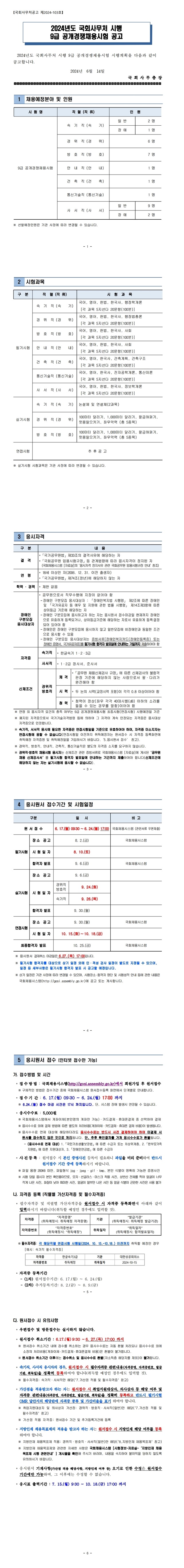 ▶ 2024년도 국회사무처 9급 공개경쟁채용시험 공고