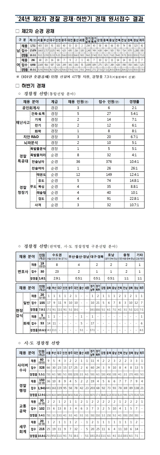 ▶ 2024년 경찰공무원 제2차 공채·하반기 경채 경쟁률