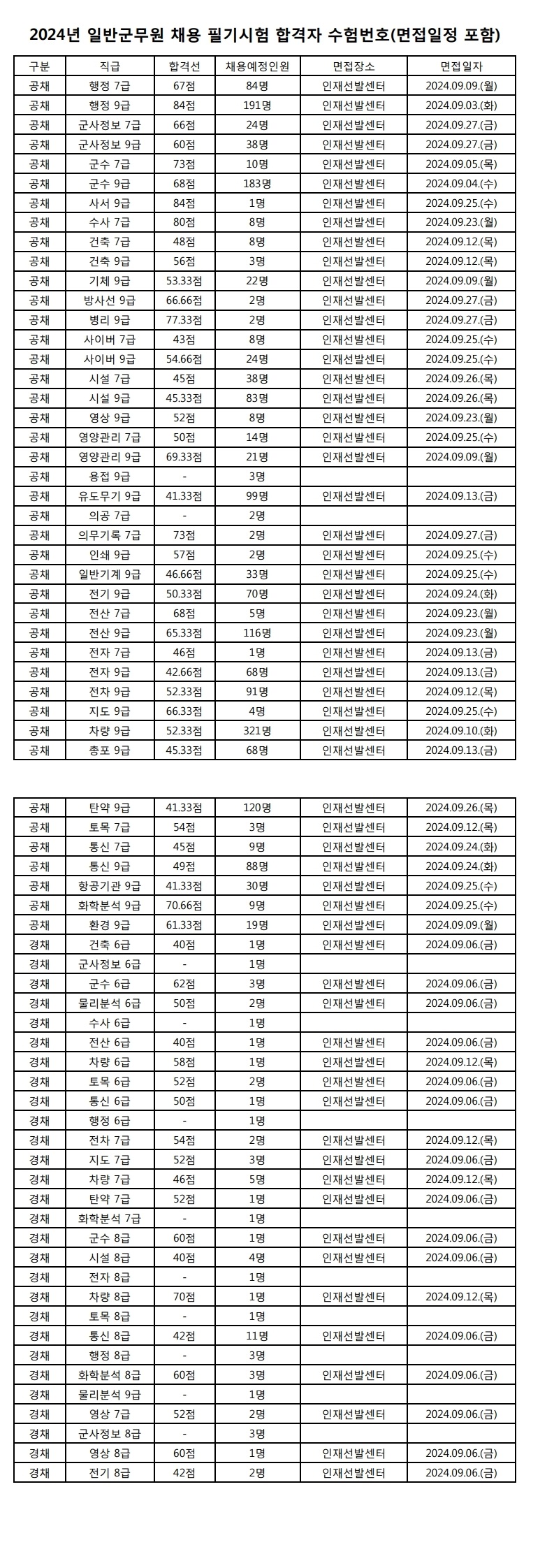 ▶ 2024년도 육군 주관 일반군무원 채용 필기시험 합격선 및 합격자 공고