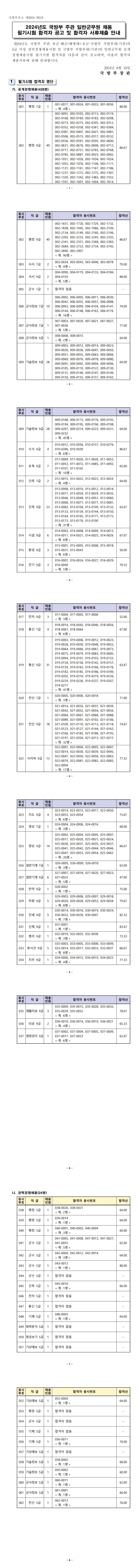 ▶ 2024년도 국방부 주관 일반군무원 채용 필기시험 합격선 및 합격자 공고