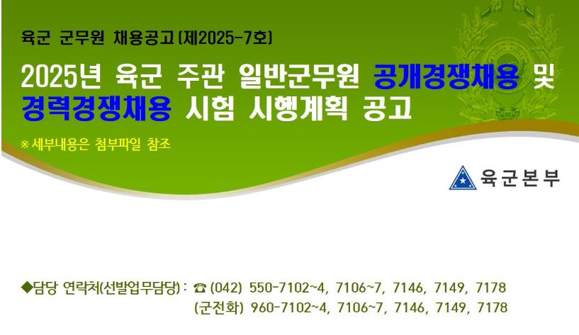 ▶ 2025년 육군 주관 일반군무원(공채 및 경채) 채용계획 공고