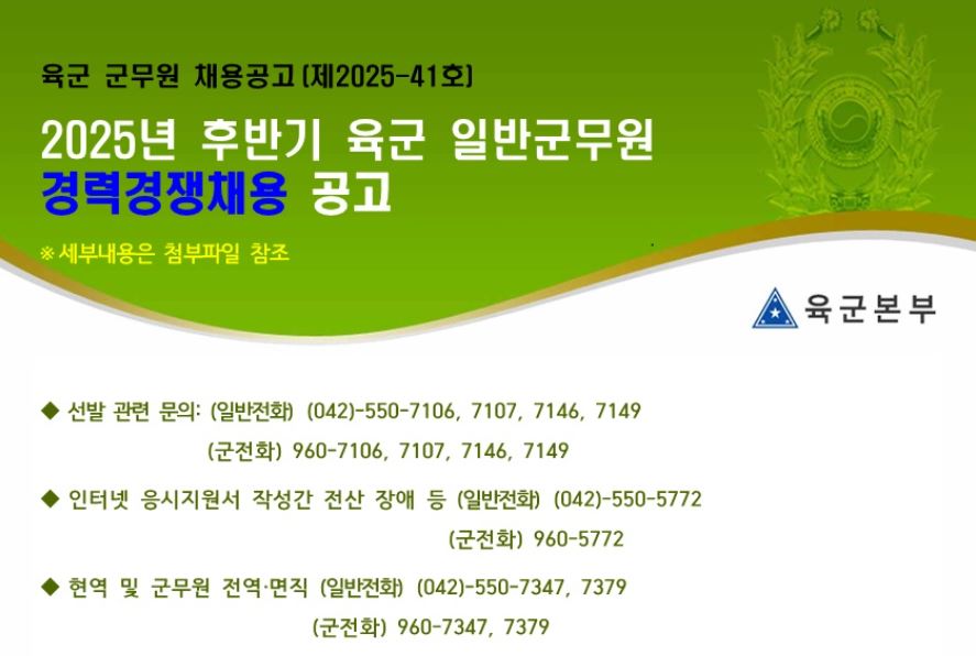 ▶2025년 후반기 육군 일반군무원 경력경쟁채용 공고